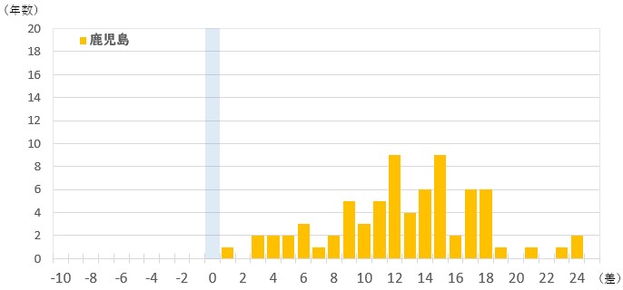 次に、東京より気温が高い西日本でもこの法則が成り立つのか、本州最南端の鹿児島を代表に検証していきます。