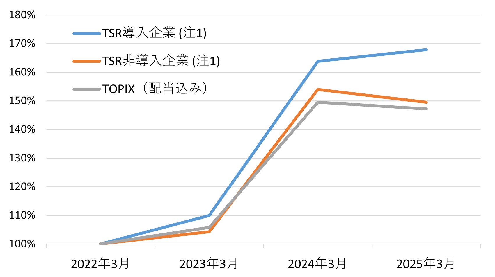 - TSR導入企業は2023年3月から2025年3月までの3年間で67.9%のリターンを示しました。