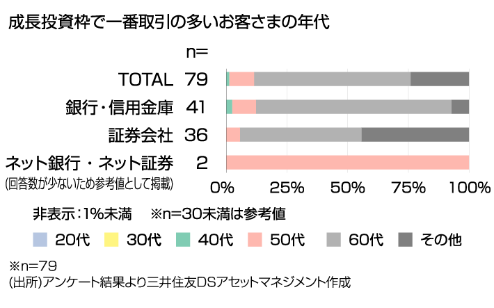 業態別で比較すると、証券会社で「税制面のメリット」、銀行・信用金庫で「老後資金形成」が相対的に多くなっています。証券会社では余剰資金の運用、銀行・信用金庫では生活資金の預け入れと、お客さまの金融機関に求める役割の違いにより、業態別で差が出ていると考えられます。