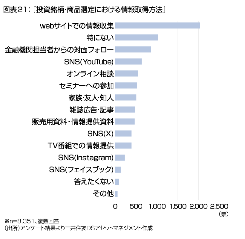 情報発信の形式については、口頭の説明や資料だけではなく、動画やSNSのようなコンテンツにも票が入りました。金融機関の方も、投資家も、様々な手段で情報を集めていることが今回のアンケートで分かっています。運用会社も様々なツールを活用して、必要とされる情報を発信していくことが今後さらに求められています。