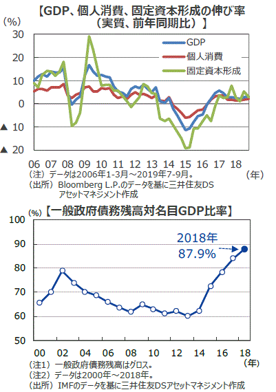 ■第二に、内外の政治的リスクが挙げられます。ボルソナロ大統領の支持率が当選直後より低下している中で、汚職で収監されていたルラ元大統領の釈放を受け、野党勢力が盛り返すとの見方や、アルゼンチンの政治不安、チリのデモなど中南米地域の政治的に不安定なイメージが再確認された可能性があります。米中対立も不透明要因です。