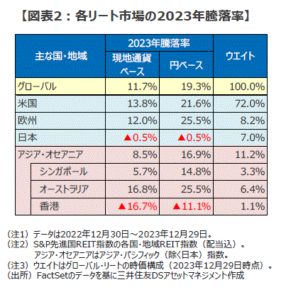 ■グローバル・リート市場の23年のリターン(現地通貨ベース)は