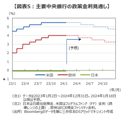 ■弊社は24年の金融政策について、景気とインフレの減速を受けて、FRBが5月以降、概ね四半期に1度のペースで0.25%の利下げを行うと想定しています。
