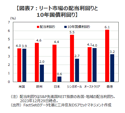 ■一方、円ベースでみたグローバル・リート市場の23年のリターンは+19.3%となりました。主な内訳は、米国市場が同+21.6%、欧州市場が同+25.5%、アジア・オセアニア市場が同+16.9%でした。