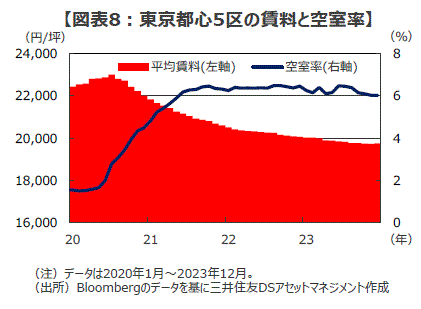 ■日本市場は、目先、日銀の政策変更への思惑が警戒され、上値の重い展開を想定しますが、財務基盤の健全化が進んでおり、下値不安は乏しいと思われます。長期金利の落ち着きやこれに対する市場の織り込みが進むことで、徐々に水準を切り上げていくとみています。最大セクターであるオフィスセクターは、23年央から市況改善を背景に底堅い動きをみせてきました。空室率のピークアウトに加えて、23年12月のオフィス賃料が3年半ぶりに前月比で上昇するなど、今後、賃料のボトムアウトがより鮮明化することが市場の押し上げ要因になるとみています。また、新NISA(少額投資非課税制度)開始に伴い高配当銘柄への需要の高まりが期待されているため、日本リートが注目される可能性があります。