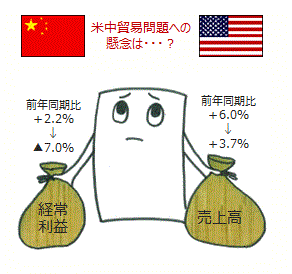 ■売上高の減速や経常利益の減少は、米中貿易摩擦の影響が表れていると見られます。米中間の協議では進捗が伝えられていますが、最終合意に至るか否か、引き続き今後の行方が注目されます。