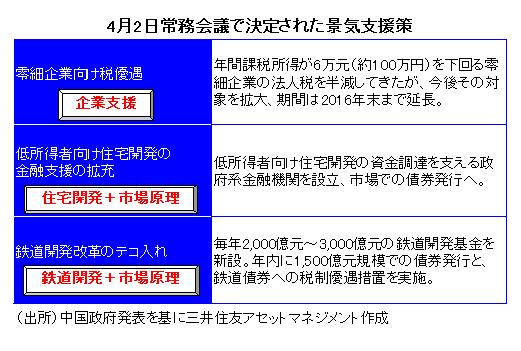 一方、今年に入ると1-2月の生産、消費、投資などの経済指標の伸びが大きく鈍化しました。このため、3月の全人代で設定した2014年の成長目標「年+7.5%前後」が達成できなくなるとの見方が早くも浮上し、また同時に、4-6月期に景気刺激策があるかもしれないとの期待にもつながっていました。