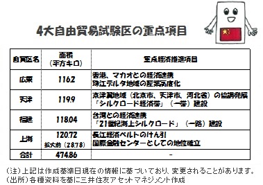 ■上海で好スタートを切ったことから、自貿区は、広東、天津、福建でも設置され、さらに上海は対象面積が4倍以上に拡大されました。