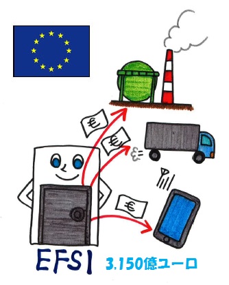 「欧州戦略投資基金(EFSI)」は、欧州委員会が提唱する投資計画の中核をなす基金で、「EFSI」はEuropean Fund for Strategic Investmentsの略称です。欧州連合(EU)と欧州投資銀行(EIB)が合計210億ユーロ(約3兆円)を負担するほか、民間からの投資も導入し、今後3年間で総額3,150億ユーロ(約47兆円)をインフラ事業などに投資する計画です。