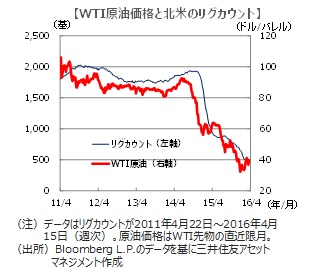 最近の原油相場には、「産油国会合」での増産回避への合意が織り込まれていたと見られます。産油国の生産が今後増加基調で推移するとすれば、北米でのシェールオイルの生産減少と北米を中心とする需要回復が予想されますが、原油需給改善の実現は遠くなりそうです。