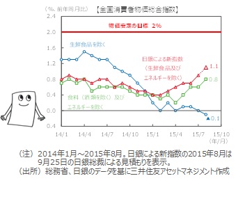 黒田総裁も指摘しているように、原油価格次第では、目標とする2016年度前半の達成は難しそうです。10月2回目の日銀会合(30日)では、同時に公表される「展望レポート」で見通しの修正があるか注目されます(10月1回目は6日~7日)。