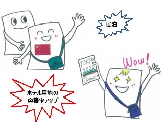 宿泊施設の増加を図る有力な手段として、現在二つの重要な施策が進められています。第一は民泊の拡大です。主として既存のマンションや住宅を活用するため、収容人員の増加に即効性があります。既に東京の大田区などの特区で、民泊の実施が行なわれつつありますが、これを全国的に拡大する方向で、「旅館業法」の改正など規制緩和策が検討されています。