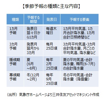 【ポイント1】「季節予報」は1カ月から3カ月、6カ月先を予報