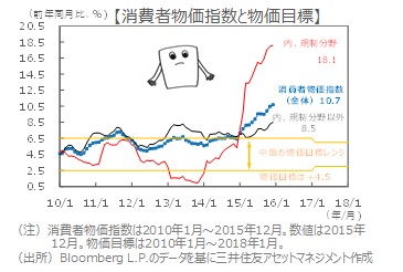 ■また、規制分野以外でも物価上昇が加速しています。公共料金値上げの価格転嫁、天候不順による野菜など食品の値上がり、ブラジルレアル安による輸入価格の値上がりなどが影響していると見られます。