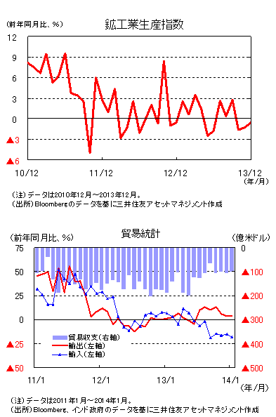 2014年1月の輸出は同+3.8%と、2013年7月以降7カ月連続でプラスが続いています。過去のインドルピー安や、米国など海外景気が底堅いことから、輸出は増加傾向が続くと思われます。