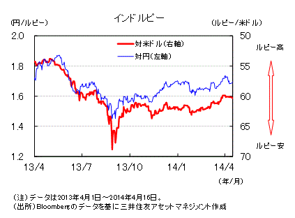 足元では総選挙(4月7日~5月12日)が実施されています。政権交代により経済構造改革が進むとの期待が強い一方、連立での新政権となり、政策調整が難航するとの予想もあります。短期的には、利上げ観測や政治情勢の変化などにより、ルピーの変動が大きくなる可能性があります。
