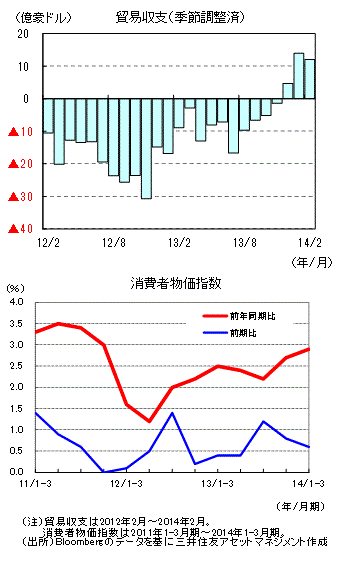 2.貿易収支は黒字が継続、物価は市場予想を下回る