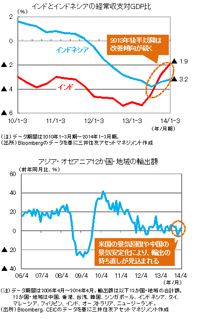 ・インドとインドネシアの景気の下振れ懸念は、足元で後退しているとみられます。経常収支、政治情勢が改善傾向にあることが主な要因です。