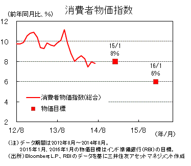 ■物価上昇率は、原油価格の低下や政府とRBIによる物価抑制への取り組みなどから、RBIの目標に向けた低下が見込まれます。2015年中の利下げ観測が強まっており、企業の資金調達環境は改善が期待されます。