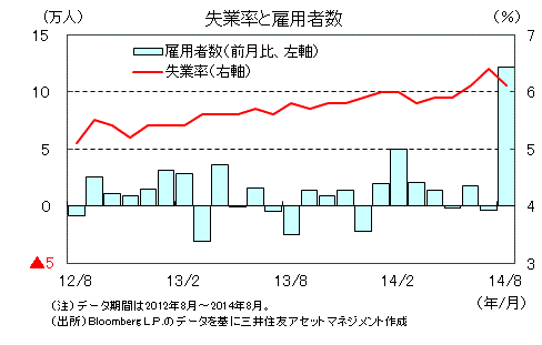 ■8月の失業率は前月の6.4%から6.1%へ低下しました。雇用者数は前月比+12万1,000人と大幅に増加しました。雇用の改善傾向は続いていますが、大幅な増加は統計の集計方法の変更なども影響していると見られます。また、7月の小売売上高は前年同月比+5.9%と底堅く推移しました。