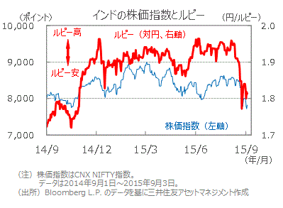 ■足元では、構造改革足踏みとの懸念が株式市場の上値を重くする一方、物価安定を背景とした中銀(RBI)による利下げへの期待が下支えする構図になっています。市場は、構造改革の進展を見守りながら、RBIの金融政策見直し(9月29日)に注目する展開となりそうです。