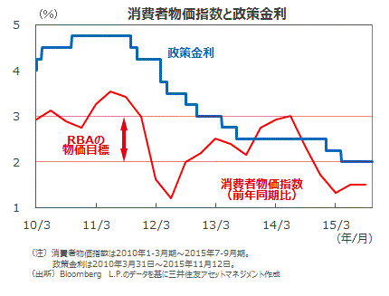 ■7-9月期の消費者物価指数は、前年同期比1.5%の上昇でした。豪州準備銀行(RBA)の物価目標である+2%~+3%の下限を引き続き下回っています。今後も、賃金上昇率や原油価格が低位にあることから、安定的に推移する見込みです。