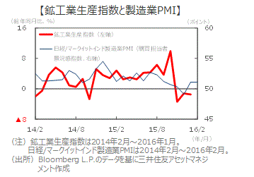 ■16年1月の鉱工業生産指数は前年同月比▲1.5%と、15年11月から3カ月連続でマイナスになりました。11月から12月に南部で発生した洪水による生産活動への影響が残っていると見られます。