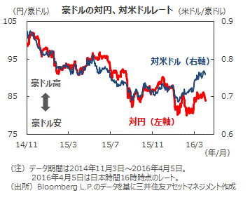 ■ただ、最近の米ドルに対する豪ドル高については、資源価格の上昇や、海外主要国の緩和的な金融政策によるものであり、国内経済に悪影響を及ぼす可能性を指摘しました。