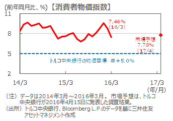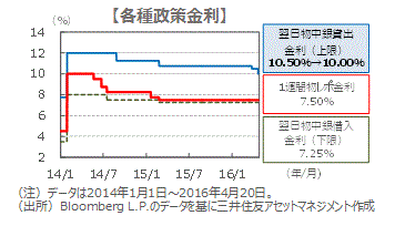 トルコの金融政策(2016年4月) 金利誘導レンジの上限を引き下げ