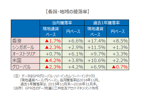 アジア・オセアニアのリート市場の動向(2016年11月その2)