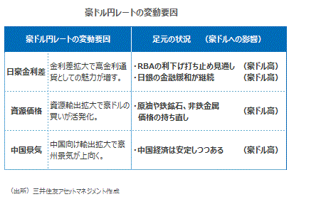 ■一方、豪日の金利差に目を転じると、政策金利据え置き見通しのRBAに対し、日銀は緩和スタンスを維持する方針です。ここから豪日の金利差が一段と縮小する公算は小さいと考えられます。資源価格、中国経済、日豪金利差等から判断すると、豪ドルは底堅く推移する見込みです。