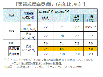 ■インドでは昨年11月の高額紙幣廃止・新紙幣交換による新紙幣不足の影響により、消費が弱含んでおり、そのために年間成長率が減速する見込みです。