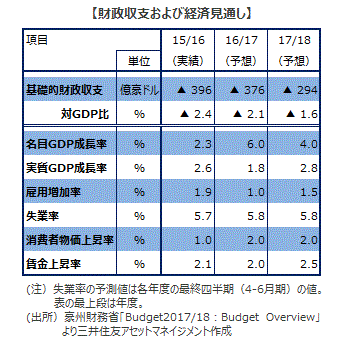 ■もっとも、財政健全化の方針は堅持されています。実際、16/17年度の予測値▲376億ドルからは改善すると予想され、最終的には20/21年度の財政黒字化を目指しています。