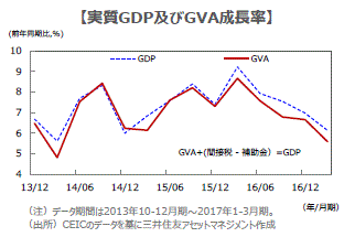 ■1-3月期の実質GDP成長率が前期から大きく減速したのは、16年11月に実施された高額紙幣の廃止に伴う混乱や、GDP統計の大幅改定による一時的要因による影響と見られます。景気の拡大基調は続いていると考えられます。