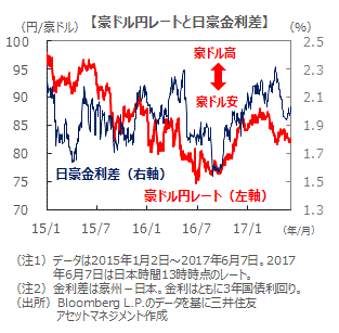 ■年後半に向け、豪州の成長率加速が見込まれること、日銀の緩和姿勢に対し、豪州準備銀行は中立維持の姿勢を継続すると予想されること、豪州の国際収支が改善基調にあることなどから、今後、豪ドルの対円相場は底堅く推移する見込みです。