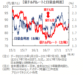 ■景気については、資源セクターの調整一巡により、緩やかな拡大を続けるとの見方を維持しました。17年1-3月期の豪州の実質GDP成長率は鈍化しましたが、一過性の要因によるものと見ています。