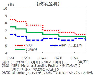 ■インド準備銀行(中央銀行、以下RBI)は8月2日の金融政策委員会で、政策金利(レポ金利)を0.25%引き下げ、6.00%にすることを決定しました。利下げは10カ月ぶりで、政策金利は2010年秋以来、約7年ぶりの低水準となりました。