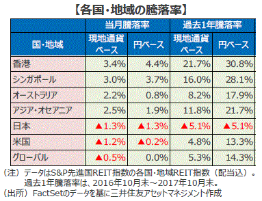 アジア・オセアニアのリート市場の動向(2017年10月)