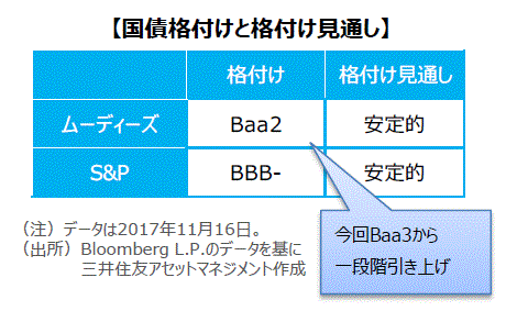 ■大手格付け機関のMoody’sインベスターズ・サービシーズは、11月16日にインドの自国通貨建てと外貨建ての長期債格付けを、これまでのBaa3から一段階引き上げて、Baa2としました。