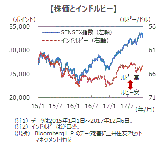 ■18年2月1日に発表が予定されている18年度(18年4月~19年3月)予算案が当面の注目点です。19年前半に予定されている総選挙をにらんで財政再建が後回しになるようだと、RBIは将来の赤字拡大、物価上昇に懸念を示す公算があります。
