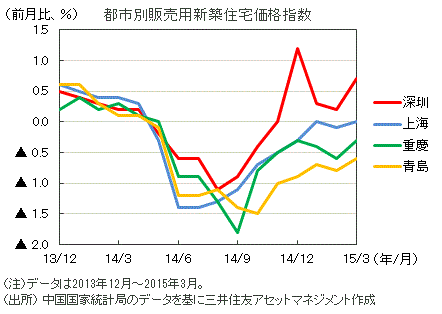 ■不動産市場は、金融緩和などの政策効果により、大都市では底入れの兆しが出ています。主要70都市の販売用新築住宅価格指数は、前月比上昇した都市が12都市と2月の2都市から大幅に増えました。3月にセカンドハウス取得規制が緩和され、改善が本格化する期待が高まっています。