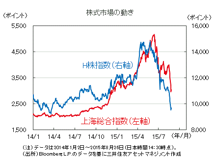 ■本土株式市場では、政策対応や経済指標を見極めようとする動きが強まりそうです。機関投資家がグローバルに投資する香港市場では、本土市場の動きに加えて、米国の利上げ観測も影響すると見られます。本土、香港市場ともに、当面は不安定な展開のなかで、底入れを探る展開となりそうです。