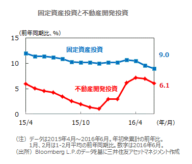■中国国家統計局が発表した16年4~6月期の国内総生産(GDP)は、物価変動を除く実質で前年同期比+6.7%でした。習近平指導部の16年の目標である「6.5~7.0%」の範囲内であり、市場予想(ブルームバーグ集計、6.6%)をわずかに上回りました。