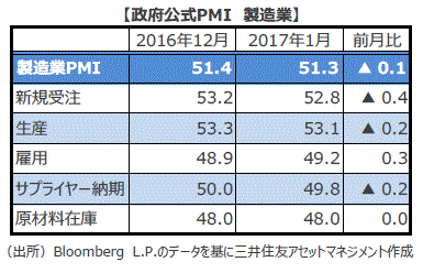 中国のPMI(2017年1月)
