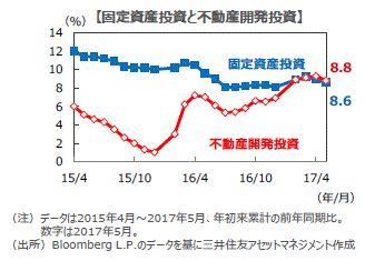 ■不動産開発投資(1~5月)は同+8.8%となり、1~4月(同+9.3%)から伸び率が鈍化しました。引き締め気味の金融政策の効果が出始めた可能性があります。