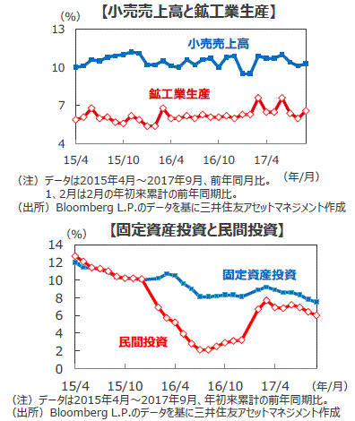 ■1-9月期の実質GDP成長率は同+6.9%となったため、17年の政府目標「+6.5%前後」を通年で達成するのは確実と見られます。