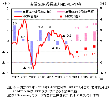 ユーロ圏では昨年10-12月期までの実質GDP成長率が3四半期連続で前期比プラスとなるなど、景気は緩やかに回復しています。また、最近はイタリア、スペインなど南欧諸国の国債への需要も強く、利回りは約8年ぶりの低水準と、財政再建への負担が以前よりも軽減されてきました。