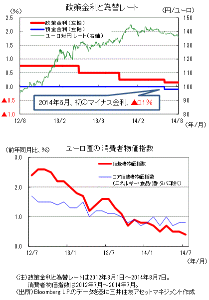 ユーロ圏の金融政策(2014年8月) 政策変更なし、景気下振れと地政学リスク警戒【デイリー】
