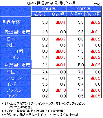 IMFの世界経済見通し(2014年10月) 世界経済の見通しを小幅に下方修正【デイリー】