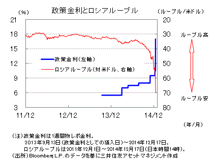 ■これまで継続されてきた利上げの影響や、原油安によるエネルギー分野での投資の減少、企業の外貨建て債務返済負担の増大などから、2015年の経済成長率はマイナスに陥る可能性が高まっています。株式、為替市場は、引き続き、原油価格の動向に神経質な展開が想定されます。
